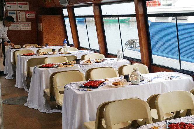Hay diferentes opciones para las celebraciones, todas ellas diseñadas con gran variedad de posibilidades y siempre ajustándonos a vuestro presupuesto y requisitos. Flores, música, catering, camareros, DJ, animación, decoración... todo lo que podáis imaginar es posible en uno de nuestros barcos. ¡No dejéis pasar la oportunidad y hacedlo todavía más memorable en lo alto de una gran embarcación!